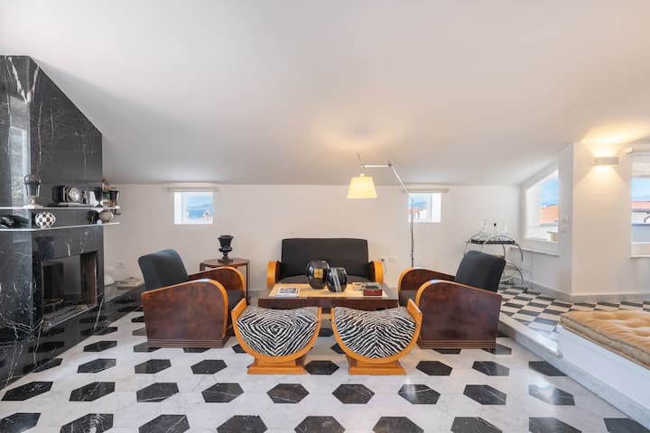 Roof a The Roof Apartment sú apartmány, v ktorých som s mamou a bratom chcel prehodnotiť rodinnú tradíciu vo svetle mojich skúseností a vytvoriť intímny a elegantný priestor s dôrazom na detaily, ktorý je vhodný pre tých, ktorí sa chcú zabávať, ale zároveň si chcú vychutnať chvíle pokoja, ktorí sa radi obklopujú umením a históriou aj počas kratších pobytov.