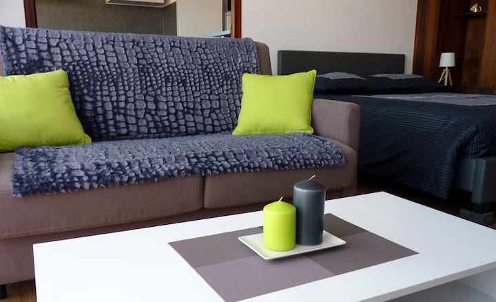 1 manželská posteľ, 1 rozkladací gauč