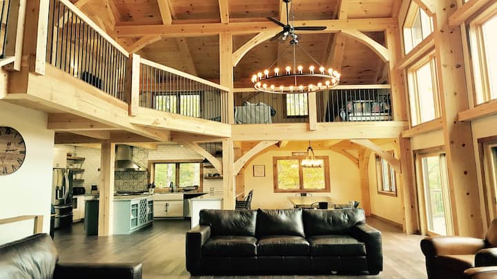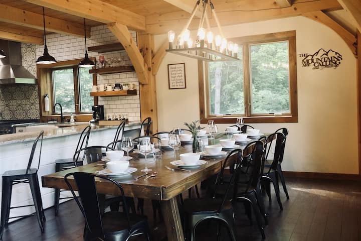 Zažite rustikálny luxus v našom drevenom dome s rozlohou 4 000 štvorcových stôp na 1 akri. Užite si 3 spálne s loftmi, 3 kúpeľňami, kanceláriou/spálňou, gurmánskou kuchyňou, 3 obývacími priestormi, herňou, bahennou miestnosťou, grilom a vírivkou pre 7 osôb na terase. Oddýchnite si pri novom ohnisku so solárnym osvetlením.