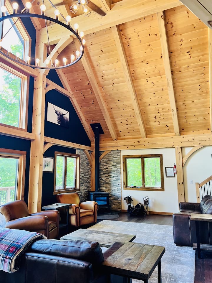 Naše bývanie s dreveným rámom v Killingtone je ideálnym miestom na strávenie dovolenky v ktoromkoľvek ročnom období. Náš domov bol nedávno dokončený v roku 2017 a má rozlohu 3 600 štvorcových stôp na pozemku s veľkou okružnou príjazdovou cestou s množstvom parkovacích miest. Naše bývanie má 3 spálne (a kanceláriu používanú ako spálňu), z ktorých dve majú ďalšie lofty, 3 kúpeľne, kuchyňu so 48-palcovým sporákom, 3 obytné priestory, otvorený pôdorys, skvelú miestnosť, herňu, bahennú miestnosť a propánový gril. Na zadnej terase je nová (2017) vírivka pre 7 osôb.
