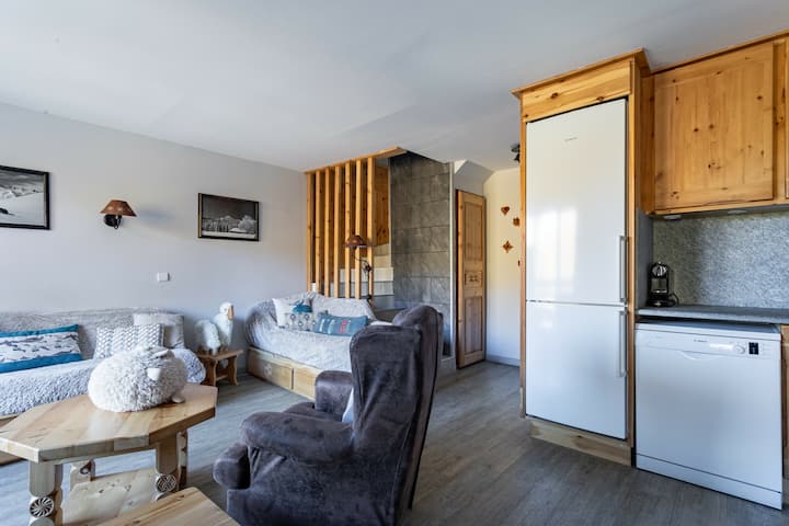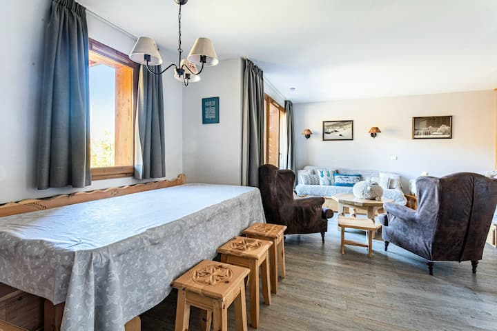 Charakteristika dovolenkového prenájmu: apartmán so 4 izbami pre 8/9 osôb. Nachádza sa v budove s výťahom. 200 m od centra strediska a obchodov. Plne vybavená kuchyňa: chladnička, mraznička, sporák, rúra, mikrovlnná rúra, hriankovač, kávovar Nespresso, kanvica na čaj, rýchlovarná kanvica, riad a príbory. Vybavenie: kúrenie, sušič vlasov, nástenné podložky, vysávač, stojan na bielizeň, televízor s plochou obrazovkou. Väčšina zážitku z maeva Super Home:
