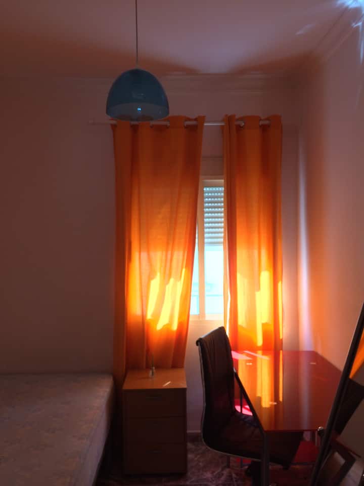 Izba s Wi-Fi, ktorá je vhodná na prácu.