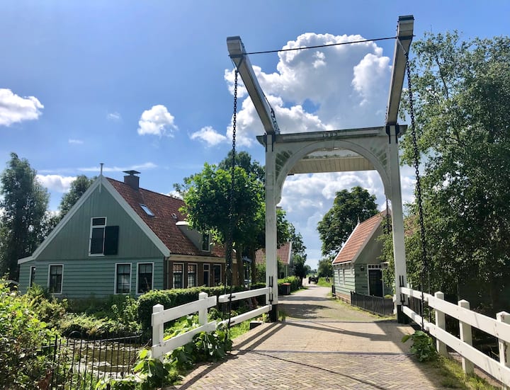 Holandská drevená chalupa v dedine neďaleko Amsterdamu