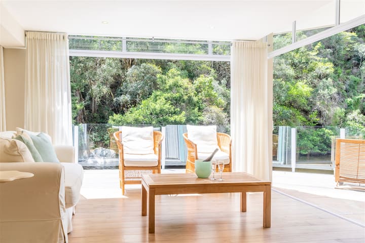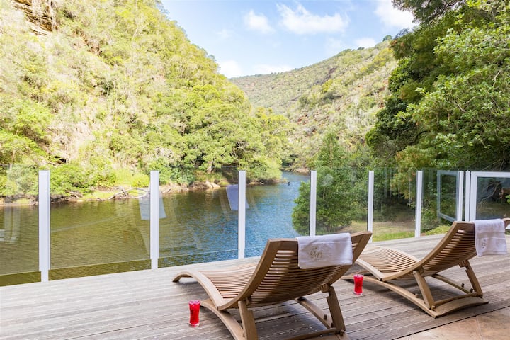 Vychutnajte si neobmedzený výhľad na rieku z 3 zo 4 spální. Sadnite si na terasu a sledujte, ako sa rieka vlieve. 5 minút jazdy od pláže Wilderness. Tento skrytý klenot sa nachádza v centre mesta medzi mestami George a Wilderness.