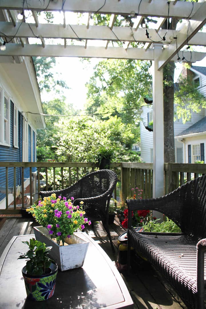 Ahoj! Vitajte v Happy Blue, roztomilej historickej chate priamo v centre mesta Laurel. Všetko je to o našej polohe , Happy Blue je plná farieb a šťastia, plná práce miestnych umelcov, ktorá sa objavila na šou Home Town. a má najlepšie premietané na prednej verande v Laurel, nebudete chcieť odísť. Vo vnútri je dostatok miesta na rozloženie, pohodlné postele a mnoho ďalšieho. Ako južan chcem, aby mali moji hostia to najlepšie!