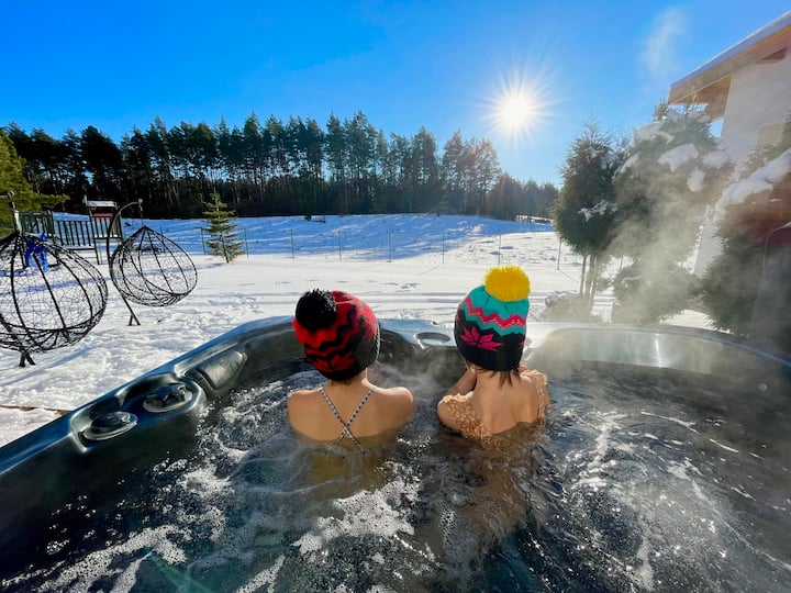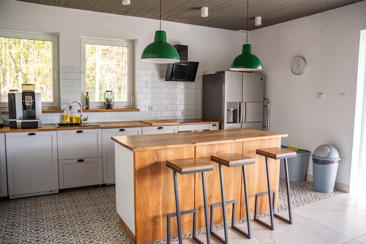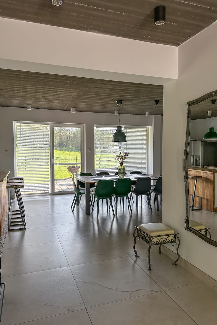 Považujeme sa za úzke duo, ktoré prechádza životom s vášňou a veľkými snami. Sme z Mazúrie, ktorá je pre nás rajom na zemi. Už mnoho rokov objavujeme ich kúzlo a šarm, ktorý si teraz chceme predstaviť širšie publikum. Začalo sa to tak, že nás našla mýtina obklopená národným parkom Masurian a potom išla z kopca. Využili sme životný zážitok architekta a interiérového dizajnéra a kovového pracovníka, aby sme vytvorili moderný dom v lese s beretom od jazera Mokrego. V Sielance nájdete pokoj, počujete jazzové poznámky a cítite sa blaženosťou. Pozývame vás.