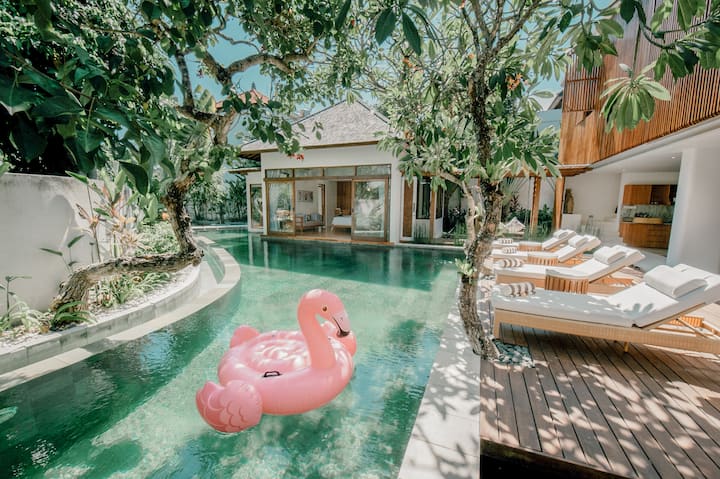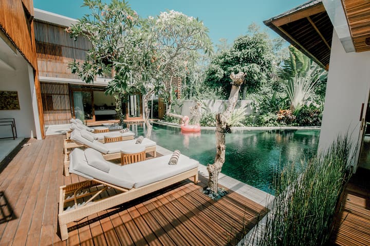 Táto krásna vila so 4 spálňami je navrhnutá tak, aby každá priestranná izba pôsobila luxusne a zároveň tradične v balijskom štýle. Každá spálňa je vybavená pohodlnými posteľami (majstrovské dielo KING KOIL) a má vlastnú kúpeľňu s inteligentným televízorom s 55-palcovou obrazovkou. V spálni a v dvoch spálňach (s manželskou posteľou) a (s dvoma samostatnými posteľami) sú sprchy, klimatizácia, pracovná lavica, denná lavica a bezpečnostné schránky.