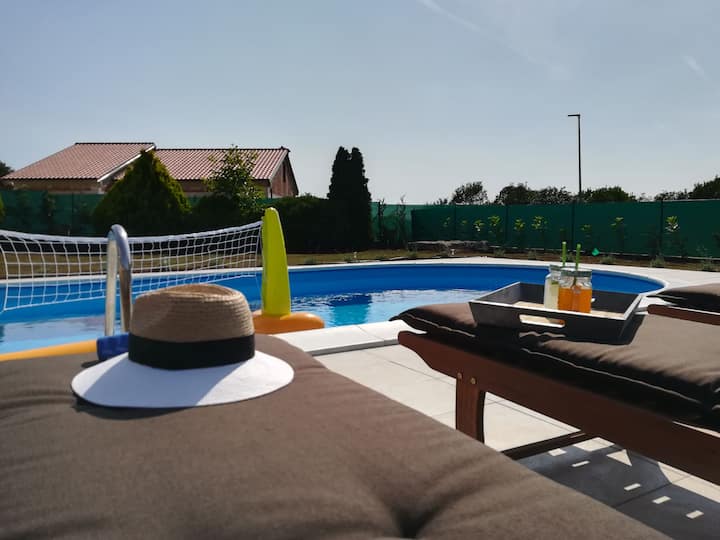 V dome sú povolené domáce zvieratá. Hostia majú k dispozícii bezplatné Wi-Fi pripojenie na internet a bezplatné bezpečné parkovanie. Dom má 4 spálne s vlastnými kúpeľňami a všetky sú klimatizované. Kuchyňa s umývačkou riadu, kávovarom, rúrou, hriankovačom a mikrovlnnou rúrou a veľkým jedálenským stolom. V obývačke je inteligentný televízor. Dovolenkový dom ponúka sezónny vonkajší bazén s ležadlami, terasu a vonkajší gril s vybavením.