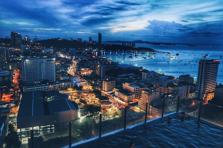 Internetová celebrita Apartmán The Base / Jadro Pattaya, nekonečný bazén s výhľadom na more / Dobrá doprava / Blízko k námornej pláži a nákupnému centru