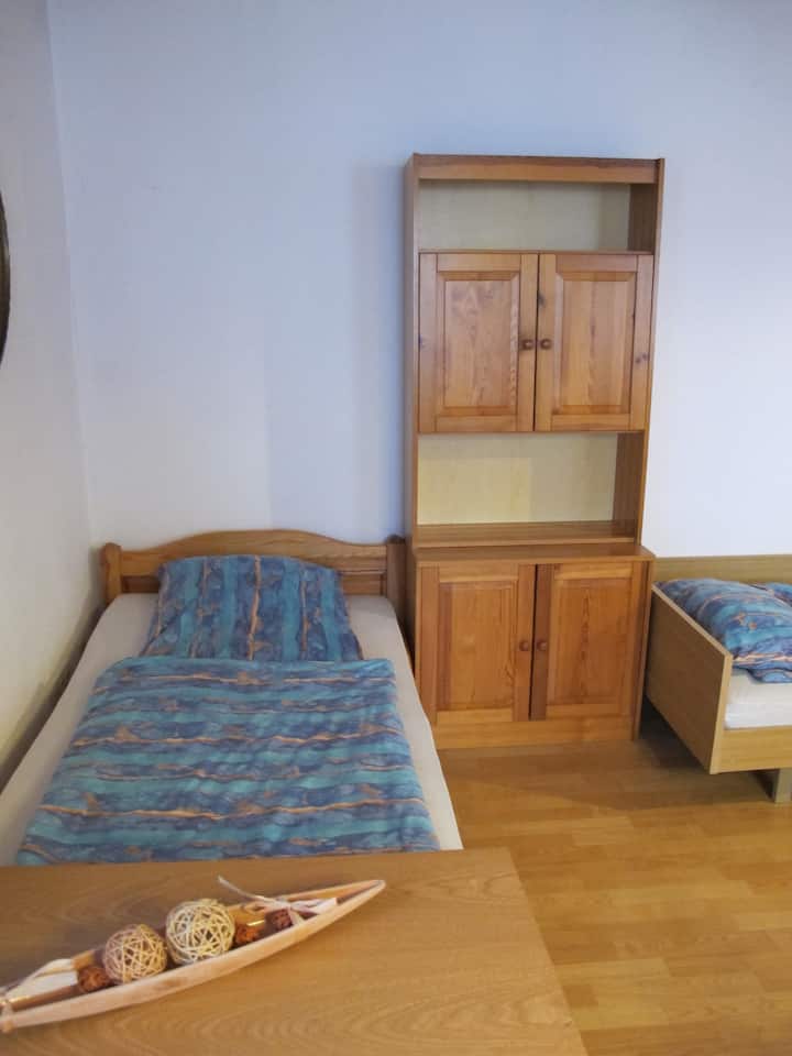 1 menšia manželská posteľ, 3 jednolôžkové postele