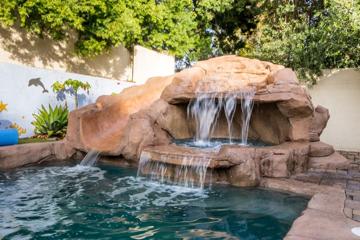 Súkromný vonkajší bazén – dostupné celý rok, otvorené v konkrétne hodiny, bazénová šmýkačka, vyhrievaný