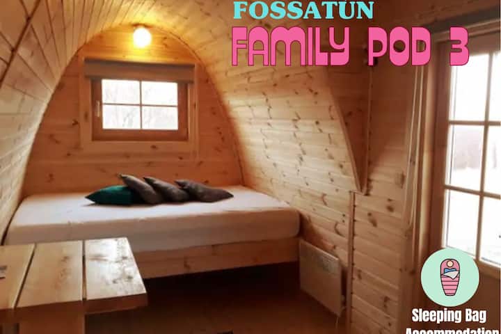 Kempingové kapsuly Fossatún – trojité kempingové kapsuly