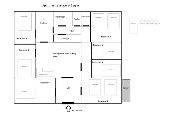 Kolosálny apartmán so 7 spálňami a balkónom – centrum