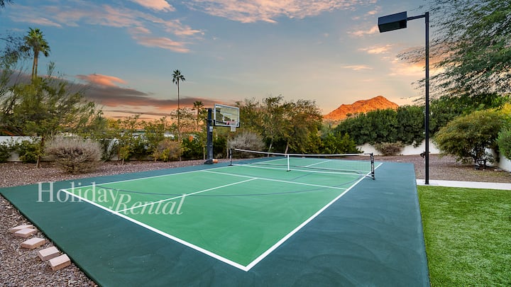 Oddýchnite si v salóniku na streche s ohniskom a panoramatickým výhľadom, vyzvite svoju partiu na pickleball alebo basketbal, alebo si vychutnajte vírivku, zatiaľ čo deti sa budú zabávať na detskom bazéniku. Chladená cabana so zabudovaným grilom je ideálna na šťastné hodiny a večere pod holým nebom a samostatný domček pre hostí (casita) zabezpečí, že každý bude mať priestor na dobitie energie.
