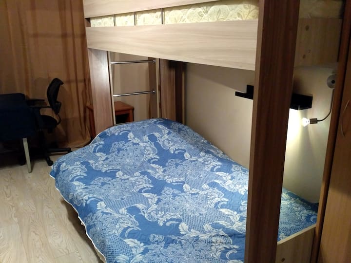 Poschodová posteľ pohodlná pre dvoch hostí