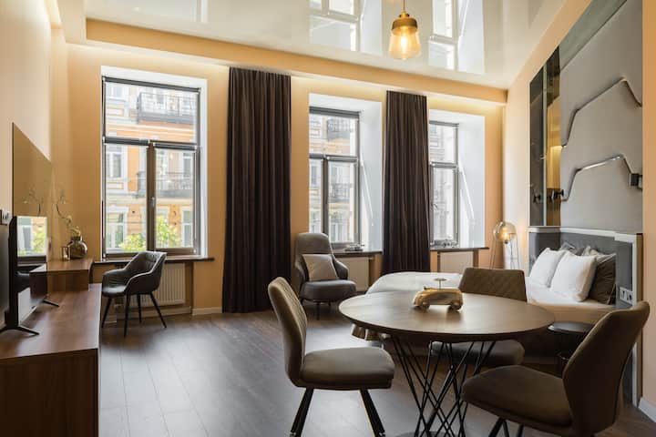 Dobrý deň, volám sa Arnold a prevádzkujem poprednú požičovňu s krátkodobými a dlhodobými prenájmami – s úžasným personálom profesionálov so sídlom v Kyjeve na Ukrajine. Vlastníme a spravujeme exkluzívne, kvalitné apartmány v historickom centre Kyjeva a Podila. Robíme to už takmer 20 rokov!