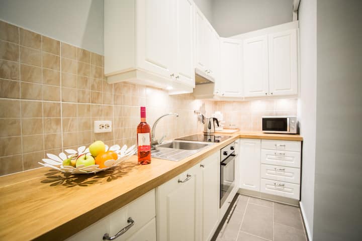 Útulný a priestranný apartmán s balkónom v centre mesta