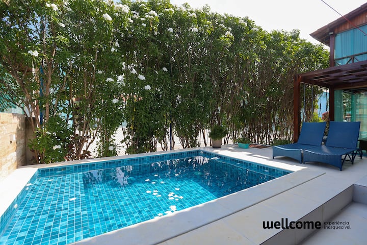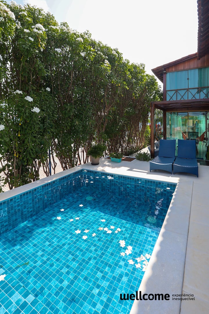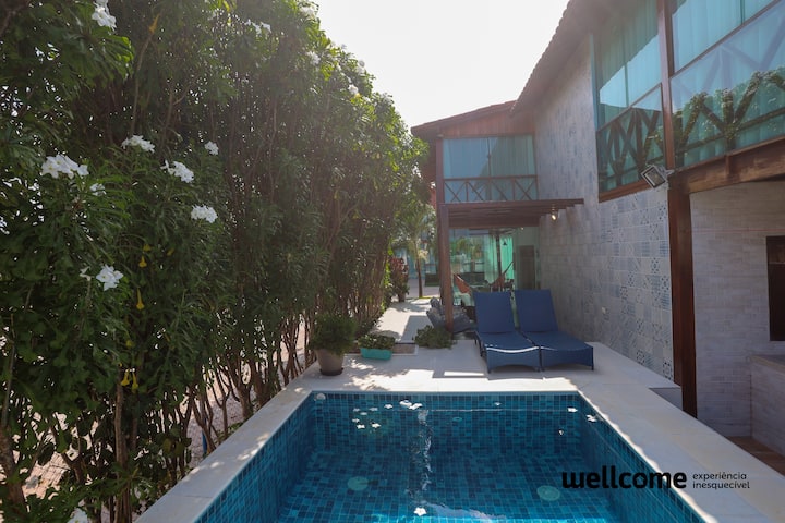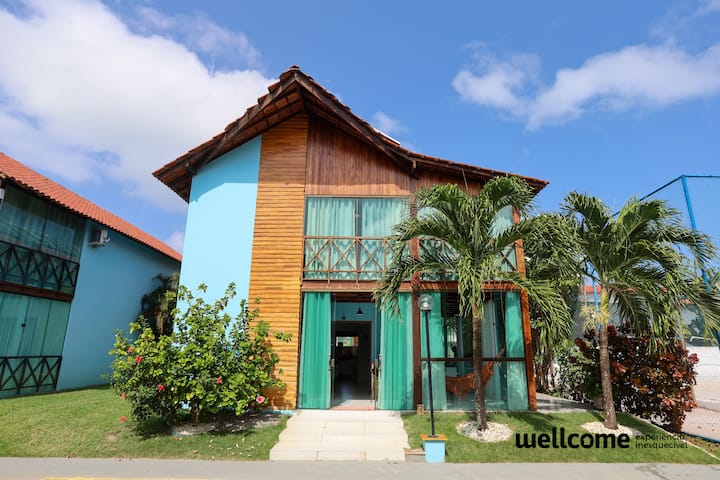 Nový, priestranný a vetraný dom. Všetky sú vybavené nábytkom a riadom, ideálne na rodinné dni. Celkovo 6 spální, 4 apartmány + 2wc spoločenský a veľký balkón s rozkladacou pohovkou a inteligentným televízorom. Všetky klimatizované izby. Gurmánska oblasť s grilom a súkromným bazénom. Zahŕňa Enxoval a zamestnanec. Parkovanie pre 4 autá. Nachádza sa v kondomíniu (herňa, ihriská a bazén) a 250 metrov od krásnej pláže