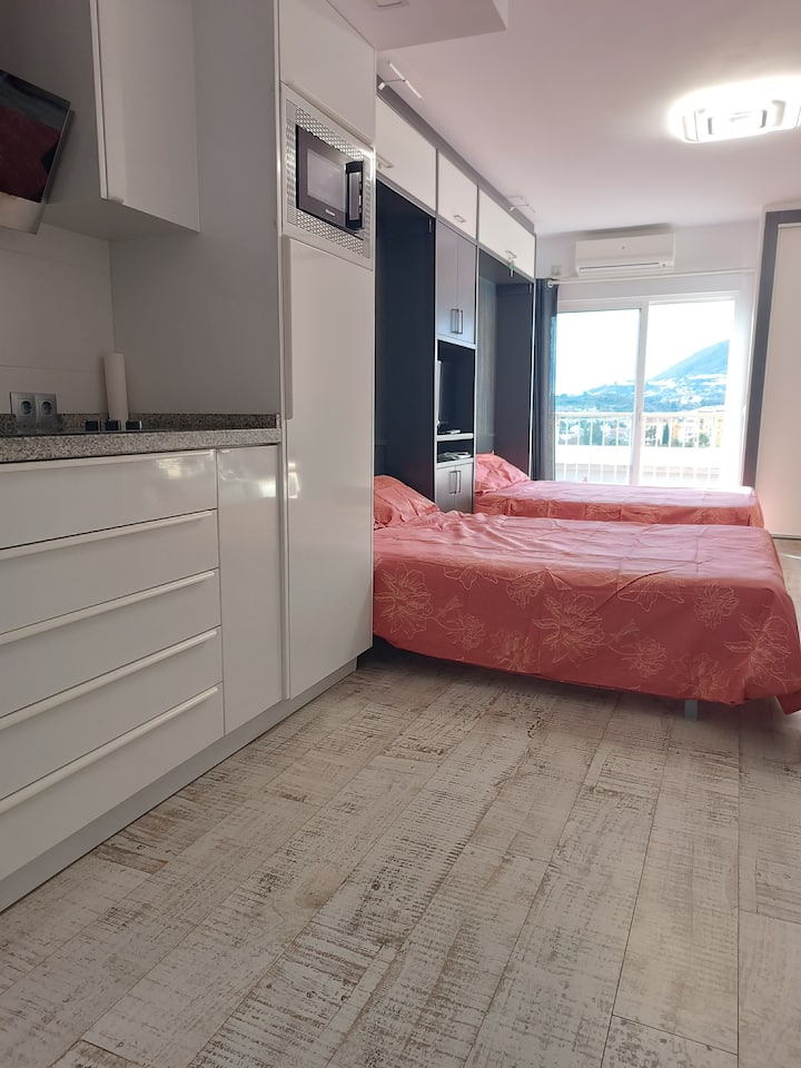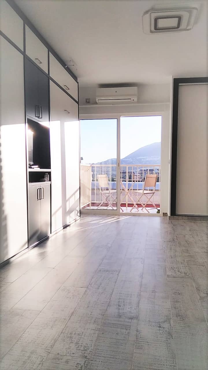 Slnečné štúdio s výhľadom na more a terasou. Bazén otvorený.