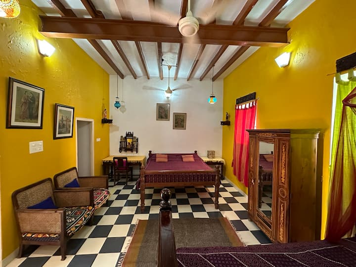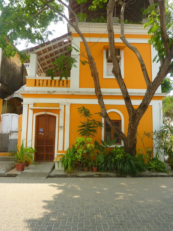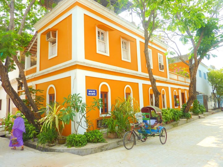 patrím k miestu, o ktoré žijem, a budem sa s vami deliť, celý môj predok bol za mnou v tomto dome zo začiatku 19. storočia. Pravdepodobne jediné skutočné ubytovanie v meste, pretože žijeme v dome, autentická francúzska architektúra klasifikovaná podľa triedy IIA od Intacha, sa stala ikonickou pamiatkou pre nadšencov Pondicherry a selfie. Sme