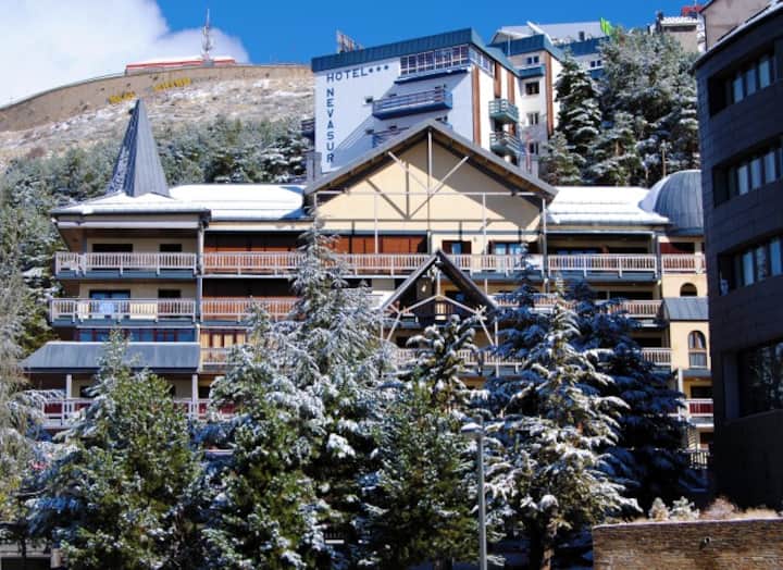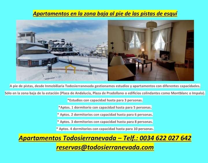 Na úpätí svahov sa tieto štúdiá a apartmány s kapacitou 1,2 a 3 spálne s kapacitou od 1 do 8 osôb zvyšujú podľa potrieb klientov. Štúdiá a apartmány sa nachádzajú len v dolnej časti stanice (Plaza de Andalucía, Plaza de Pradollano alebo priľahlé budovy, ako sú Montblanc alebo Impala).