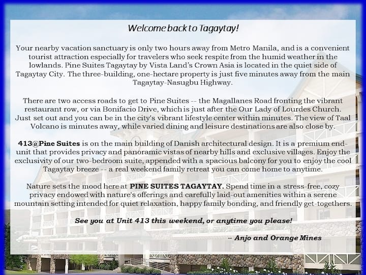 413@Pine Suites Tagaytay | Priestranná jednotka s 2 spálňami