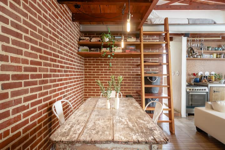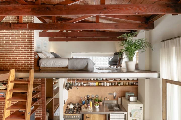 Útulný loft v centre mesta s výhľadom na strešnú terasu