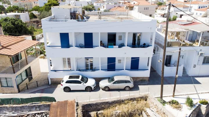 - Megalochori: dovolenkové prenájmy s vonkajším sedením