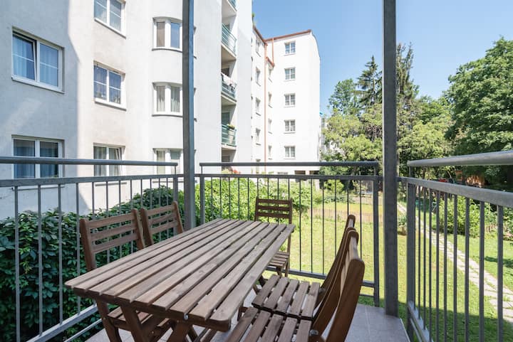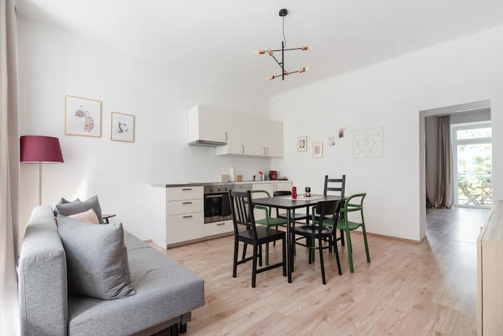 Farebný apartmán s výhľadom na zelený dvor