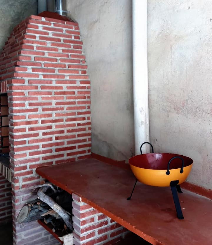 Vidiecky dom s grilom a veľkou terasou.