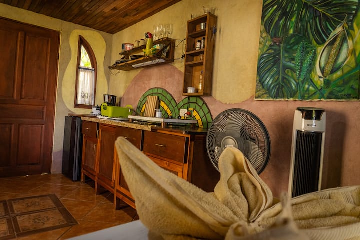 Ceníme si život a sme vďační, že sme stále nablízku zdravým spôsobom. Milovníci prírody, pokojní, milujú psov rovnako ako ľudí :) a všetky vnímavé bytosti. Zahrajte si hudbu a milujte tanec. Nasledovníci spirituality ako spôsob, ako byť prítomný v tomto živote. Sme pár vytvorený vedľa osudu vďaka nášmu pochopeniu rozmanitosti. Peter, dobrodružný a vizionársky Nemec, ktorý opustil svoju krajinu v zadnej časti svojej mysle, pretože bol dieťaťom, mal pocit, že žije v zahraničí. Prišiel do Kostariky pred rokmi a okamžite sa zamiloval do krásy Kostariky a s citlivou kostarickou ženou Rocio. Bývalá učiteľka na Kostarickej univerzite, tanečnica, ktorá má tú česť získať magisterský titul na univerzite Naropa v Boulderi v Colorade. Pochádza z rodiny speváčky Zarzuely a Operety a známeho olejomaľby. Návštevníci si môžu vychutnať jeho obrazy, ktoré dávajú život, farbu, zmysluplnosť a nalejte do tohto priestoru a časového kontajnera úžasnú energiu. Peter a Rocio požehnaní kozmosom zo dňa na deň, rodina 16-ročnej dcéry a staršieho syna. Rodina s umeleckým okom, ktoré im umožňujú život starať sa o ne tým, že sú vždy vďační silám, ktoré vytvárajú svoj rytmus a jazdia v tejto trajektórii bytia.