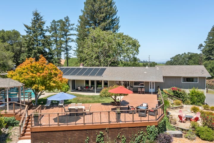 Vinárstva sú hojné a v priebehu niekoľkých minút sa môžete prejsť medzi nedotknutými vinicami po priezračnej ceste vedľa domu a nájsť dve z najlepších degustačných miestností v tejto oblasti. Ohromujúca drsná krása pobrežia severnej Kalifornie je vzdialená len 20 minút cesty a niektoré z najlepších reštaurácií, nákupných centier a umeleckých kolónií sú v rovnakej vzdialenosti.
