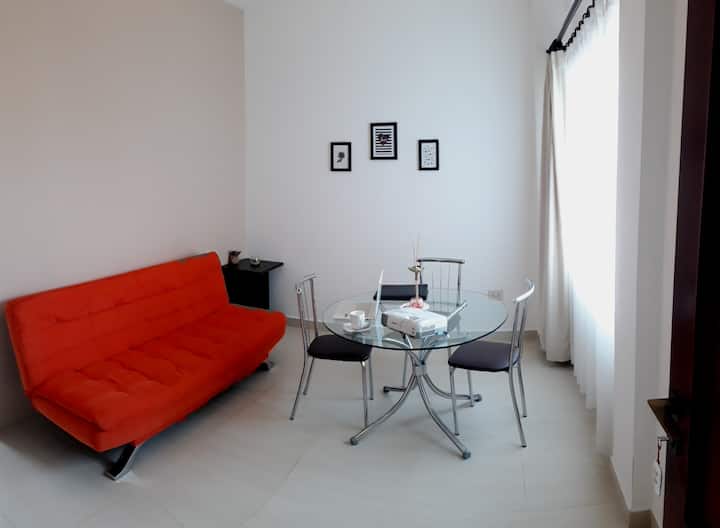 Oddelenie 45 m, 1 izba, 1 lôžko, 1 kúpeľňa, obývacia izba/jedáleň a kuchyňa. 1 TV s plochou obrazovkou 55", klimatizácia teplá/studená v izbách, digitálna bezpečnostná schránka, Wi-Fi, streamovacia služba.