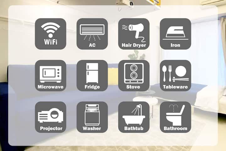 全ての部屋でを無料で提供しておりプライベートバスルーム冷蔵庫テレビも常備していますまた一部の部屋では上記アメニティに加えユニット内にキッチンと洗濯機も備え付けられていますWi-Fi