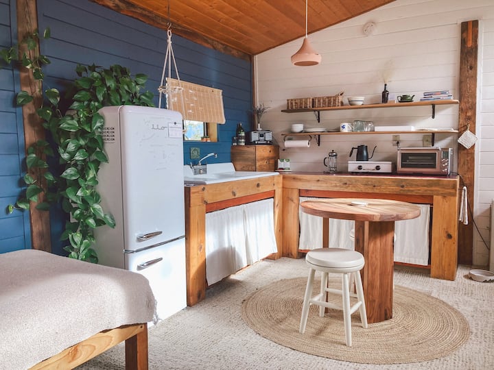 Pár snílkov pôvodom z východného pobrežia a stredozápadu, ktorí sa stretli s cestami v Austine v Texase a narazili na našu vysnívanú usadlosť v Novom Mexiku.