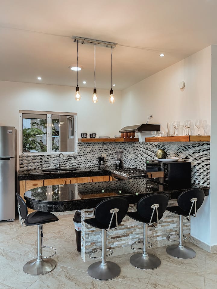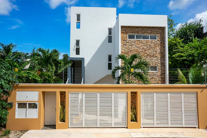 Táto krásne navrhnutá 3-poschodová vila je ideálnou základňou na prežitie prosperujúceho nočného života v Tulume s najlepšími miestami, ako sú Tantra, Taboo a Bagatelle, len kúsok cesty autom. Objekt sa môže pochváliť 5 priestrannými spálňami, 6 pohodlnými posteľami, 5,5 elegantnými kúpeľňami, 3 plne vybavenými kuchyňami, svetlou a otvorenou obývacou zónou a veľkou jedálňou – ideálne pre skupiny až 12 hostí. Vrátnik k dispozícii nepretržite