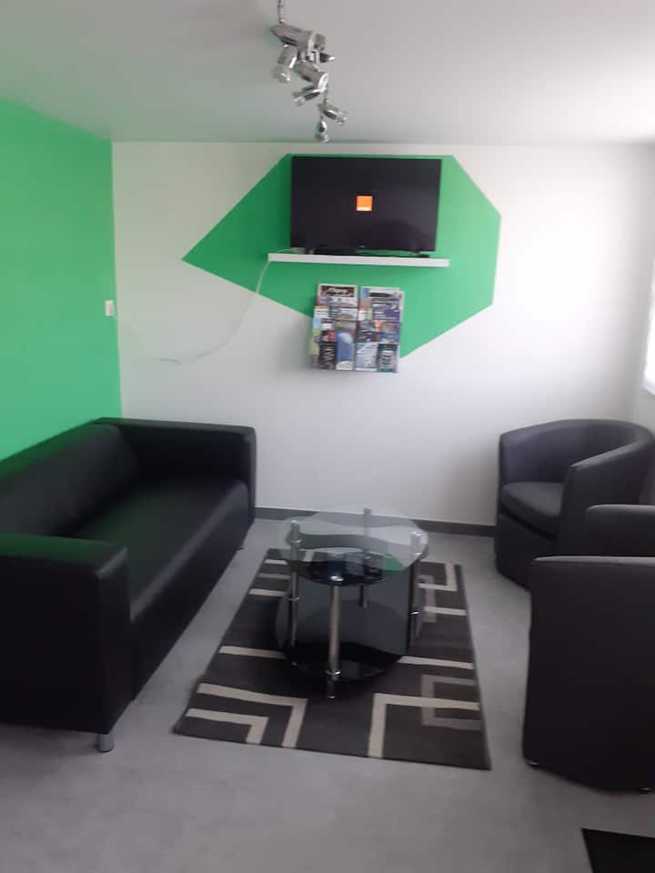 Tichý, moderný nábytok, príjemný, funkčný, veľmi dobre vybavený podľa predchádzajúcich nájomcov, v blízkosti všetkých obchodov (300 m). V okolí sa nachádza množstvo ciest a diaľnic.