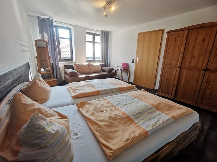 Som Anneliese a majiteľom 5 dovolenkových apartmánov vo Wernigerode. Štyri sa nachádzajú v starom hrádzovom dome v bezprostrednej blízkosti centra mesta a obľúbenej vyhliadky na hrad Wernigerode. Podporuje ma Franziska, moja online asistentka, pri optimalizácii správ a iných procesov na internete. S takmer 80-ročným dieťaťom už internet nie je mojou odbornou oblasťou. Starám sa o všetko ostatné, o osobný kontakt s hosťom - keď robím všetko, čo je v mojich silách, aby som privítal svojich hostí osobne v našom krásnom meste v Harz. Od začiatku pandémie starostlivo renovujeme byty, takže niektoré obrázky nie sú úplne aktuálne - žiadame vás o pochopenie, pretože tu je veľa práce. Ja sám som uprednostňovaný a najlepšie je zastihnúť telefonicky.