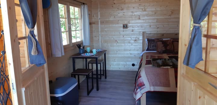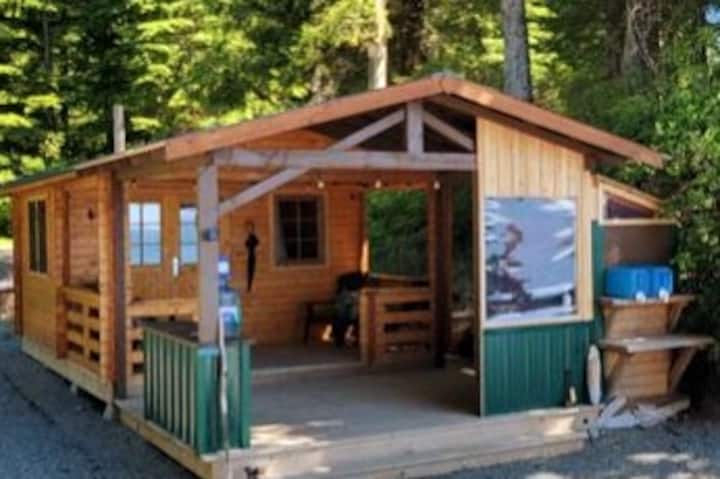 Môj manžel Curtis a ja prevádzkujeme kemp v divokej prírode počas letnej sezóny na ostrove Vancouver. Žijeme v chatke mimo rozvodnej siete v kempe a radi zdieľame náš malý kúsok raja s naším hosťom.