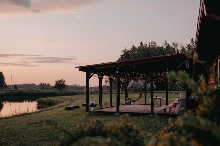 Útulná chata na brehu jazera na vidieku „Rukisi“