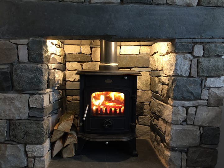 Vstúpte pod bizarnú verandu s „dubovým rámom“ do otvoreného obytného priestoru dláždeného (pod ohrievanou) bridlicovou podlahou, ktorá je pri návrate z ciest za každého počasia príjemná. Pohodlný salónik s koženým apartmánom a inteligentným televízorom má aj horák umiestnený v tradičnom kamennom INGlenooku, ktorý sa v týchto chladnejších večeroch „útulne až“. Guľatinu si môžete zakúpiť za zľavnené sadzby, hoci bezplatný „štartovací balíček“ je poskytovaný ku všetkým pobytom od októbra do apríla.