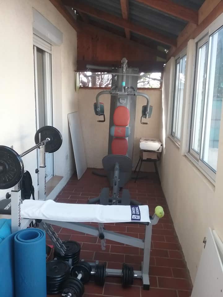 Dobre si zacvičte, veď sú tu k dispozícii podložka na jogu a činky. Prečo to nevyužiť?