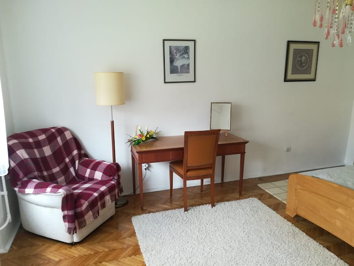 Izba s Wi-Fi, ktorá je vhodná na prácu.