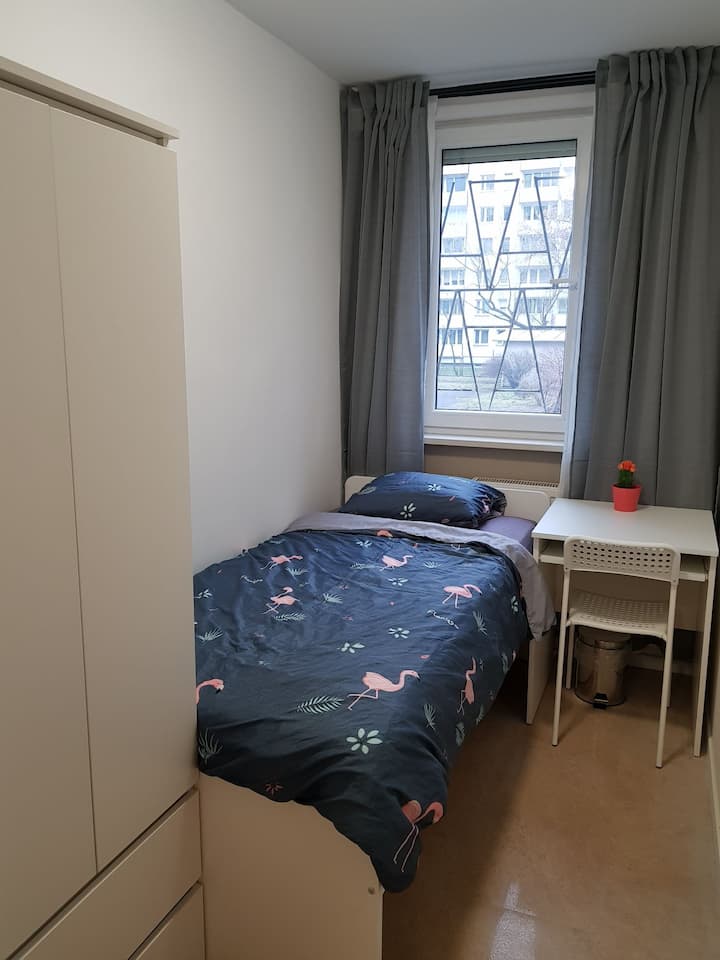 Vlastná izba v bývaní a k tomu prístup do spoločných priestorov.