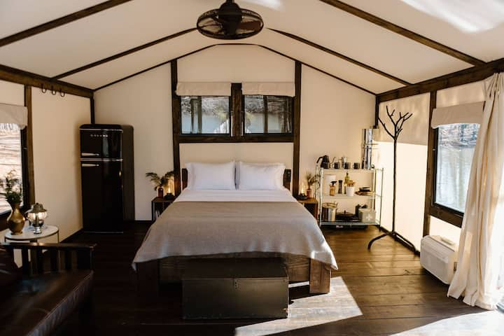 Túto nehnuteľnosť (48 zalesnených akrov v Stone Mountain) sme kúpili v roku 2014, keď sme sa vzali! Mali sme svadbu na pozemku a vychovali sme tu našich dvoch chlapcov. Blaine je maliar, keramický umelec a huslista .Matt je podnikateľ na plný úväzok. Keď sme prvýkrát postavili stany, hľadali sme miesto na rande a stále sme si užívali náš objekt. Dúfame, že vám dáme ochutnať to, čo na tomto magickom mieste, ktoré nazývame domovom, najviac milujeme.