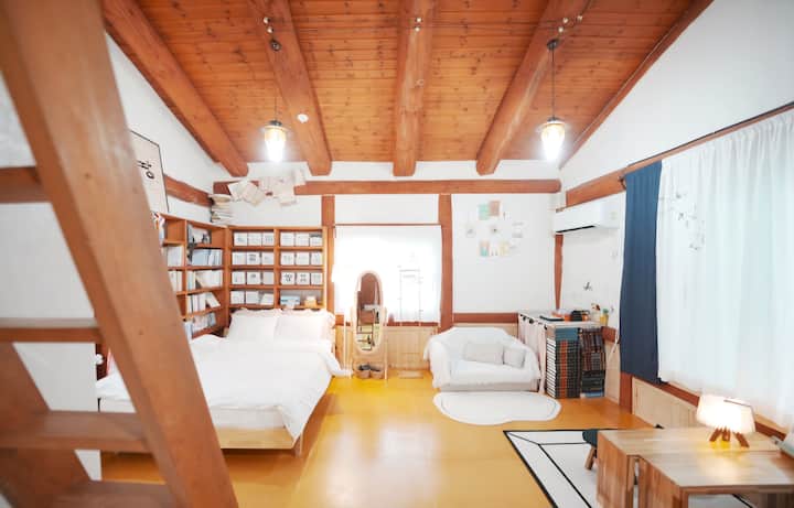 Gurumsanbang – samostatný dom z dreva a hliny: pobyt v knižnici: retro hudba: grilované jedlo