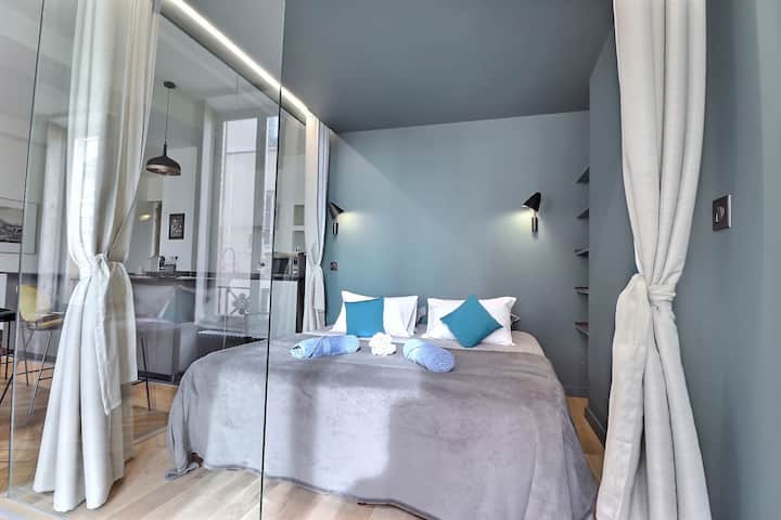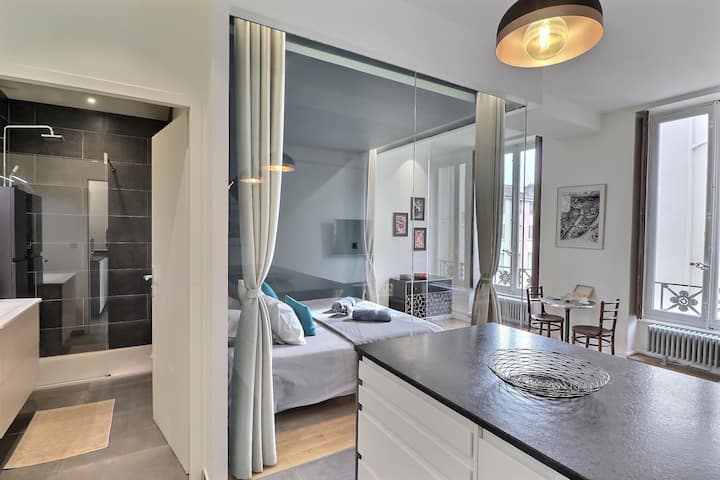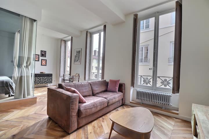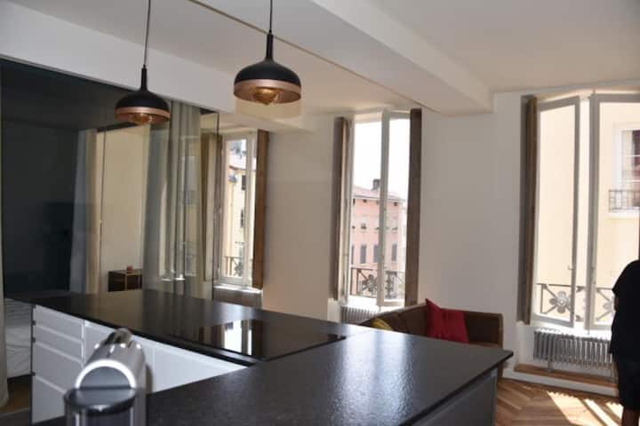 Miesto svetiel vás privíta v kompletne zrekonštruovanom apartmáne v módnom podkrovnom štýle v srdci Lyonu, v blízkosti radnice a námestia Place des Terreaux.