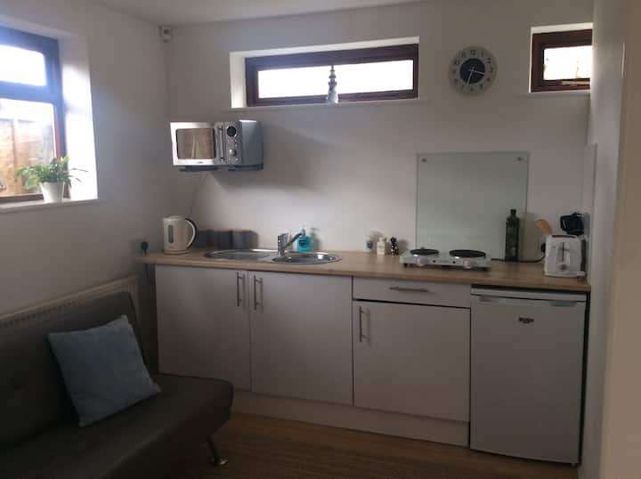 Dobrý deň, mám k dispozícii prístavbu na krátkodobé pobyty...má vlastnú kuchyňu a vlastnú kúpeľňu s dvoma manželskými posteľami… v blízkosti nemocnice, New Forest a Pepper Pig World…výletné parkovanie je k dispozícii na požiadanie
