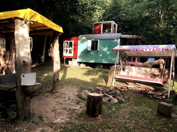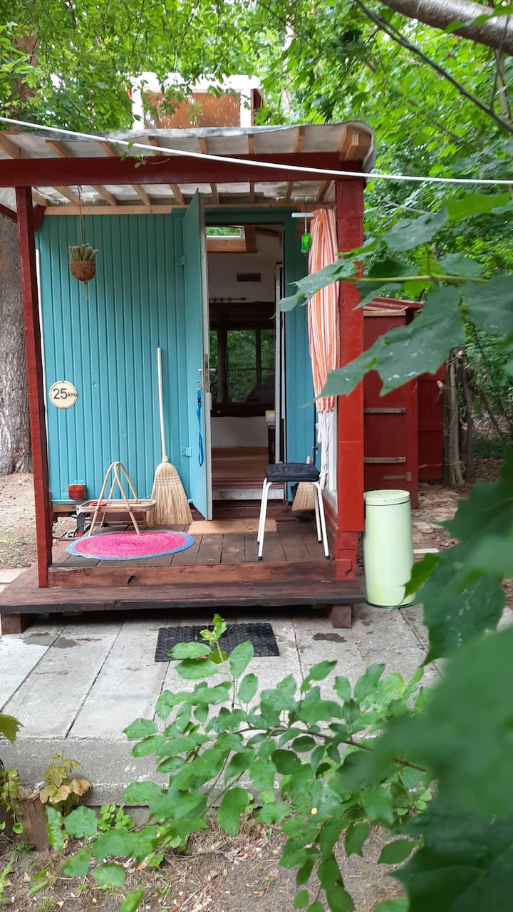 Traja z nás tu žijú ako spoločný byt a ja prenajímam stavebný príves na našom pozemku. Pracujem voľne ako krajčír na tašky, batohy, malý nábytok... veľa robím a niekedy premieňam stavebný príves na dovolenkový prenájom. Vitajte!