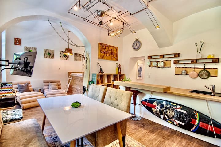Volám sa Stefan. Moja partnerka Renee a ja sme veľmi radi, že môžeme cestovať so sebou, a preto sme tento byt navrhli tak, ako by sme si ho predstavovali na dovolenke.